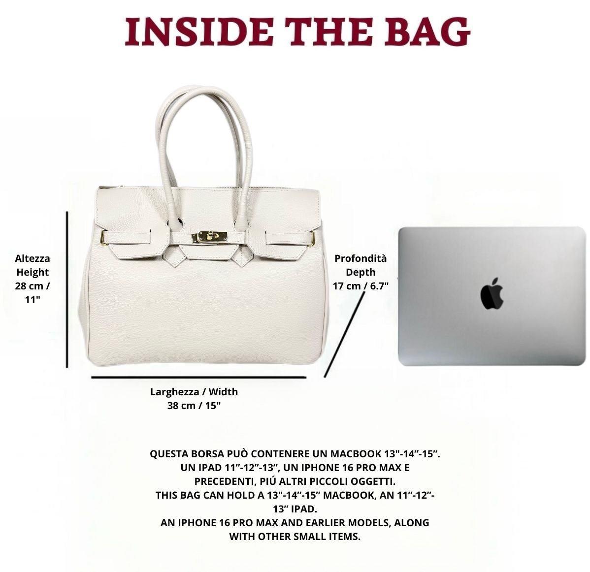Réalisé en cuir dollaro de haute qualité, avec un grain naturel et une structure rigide, il offre l’équilibre parfait entre élégance et fonctionnalité. L’ouverture à rabat avec fermeture éclair assure praticité et sécurité, tandis que l’intérieur en coton avec poche zippée permet de tout organiser. Équipé de poignées et d’une bandoulière réglable pour s’adapter à toutes les occasions, du travail aux loisirs.