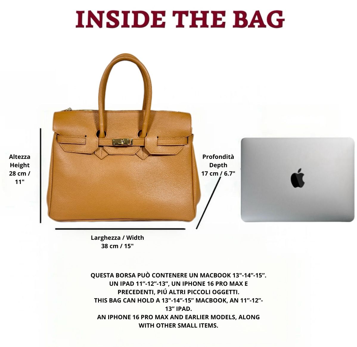 Réalisé en cuir dollaro de haute qualité, avec un grain naturel et une structure rigide, il offre l’équilibre parfait entre élégance et fonctionnalité. L’ouverture à rabat avec fermeture éclair assure praticité et sécurité, tandis que l’intérieur en coton avec poche zippée permet de tout organiser. Équipé de poignées et d’une bandoulière réglable pour s’adapter à toutes les occasions, du travail aux loisirs.