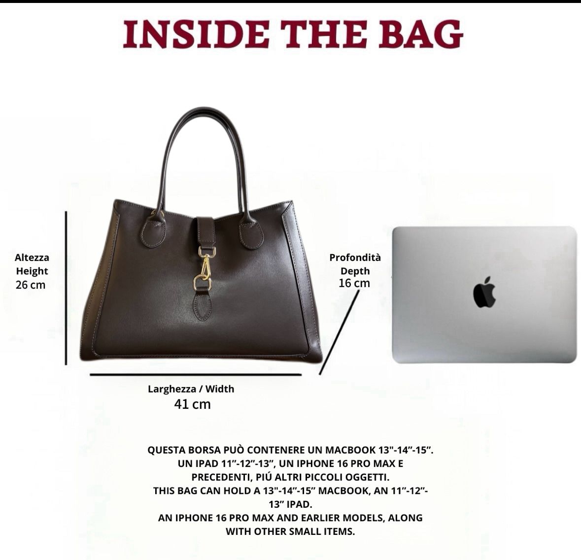 Portofino en cuir lisse marron foncé est le choix idéal pour celles qui recherchent un sac spacieux, structuré et raffiné, parfait pour vous accompagner avec assurance tout au long de la journée.